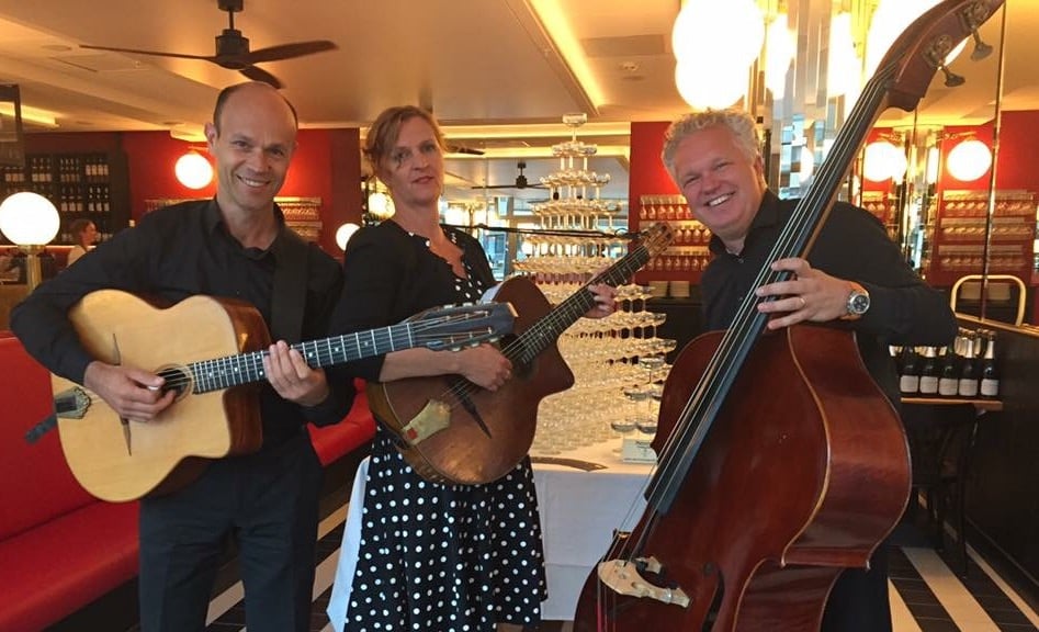 Dit Trio laat zich inspireren door de swingende Gypsy Jazz muziek. De muziekstijl die in de jaren 30 is ontstaan met als groot voorbeeld Django Reinhardt. Met nummers als: Out of nowhere, All of me, Bei mir bist du schön, Mr. Sandman, Summertime, Minor Swing, Love for Sale etc. Indien gewenst kan het aangevuld worden met viool of klarinet.
